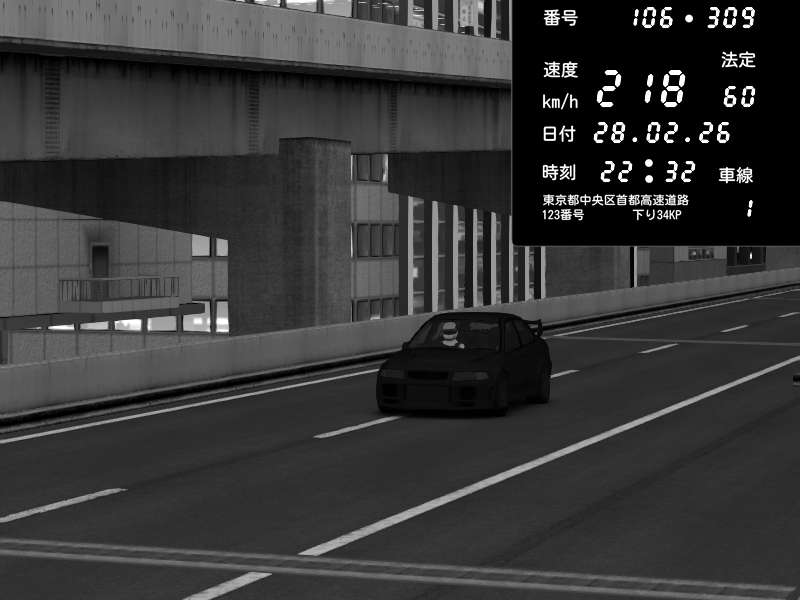 | 2026/02/28 22:26 | 9号下り 木場 | 231 / 60 km/h | CCS 02 | Mitsubishi Lancer Evolution V Wangan Spec | CAPTURE |