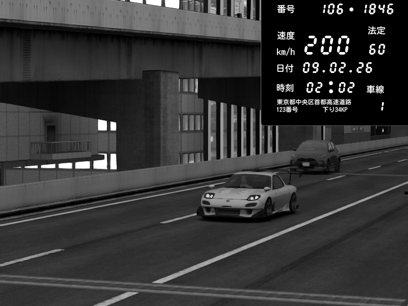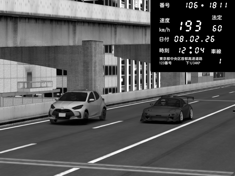 | 2026/02/08 00:07 | 9号下り 木場 | 230 / 60 km/h | WALKER08 | Mazda RX-7 FD3S RE Amemiya | CAPTURE |