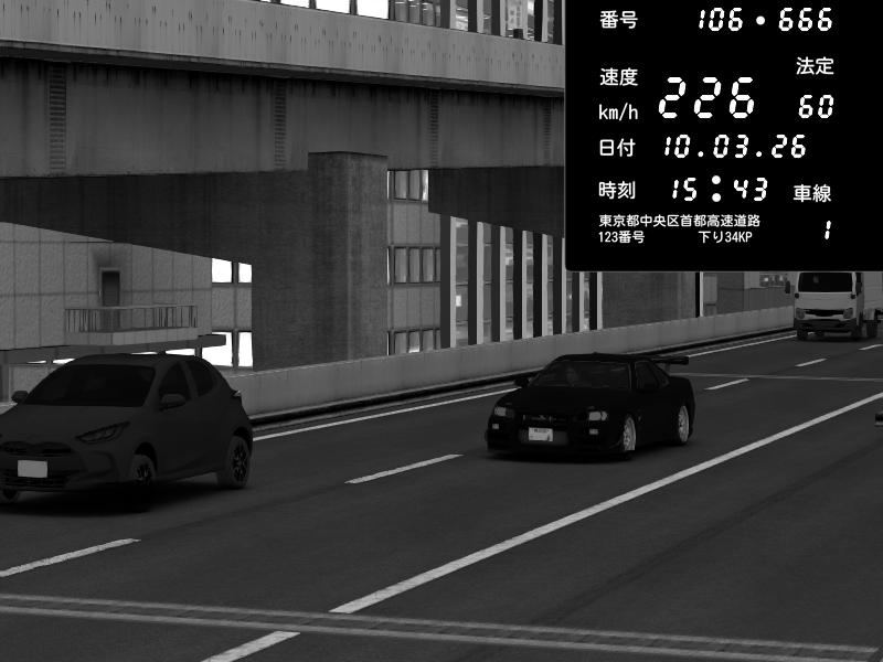 | 2026/03/10 15:43 | 9号下り 木場 | 226 / 60 km/h | MotorGeeks #2 | Nissan Skyline GT-R R34 Nismo Omori Factory S1 | CAPTURE |