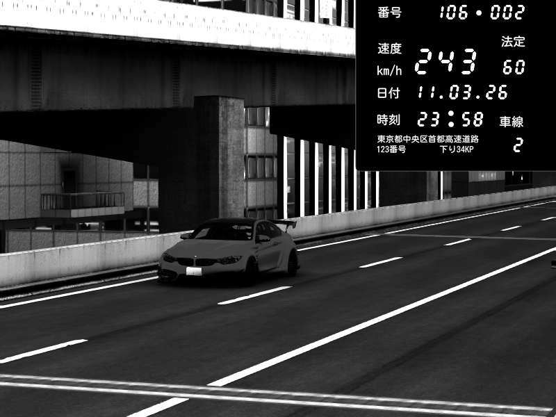 | 2026/03/11 23:58 | 9号下り 木場 | 243 / 60 km/h | Mixed_P5K | BMW M4 crash.Sp Varis Widebody | CAPTURE |