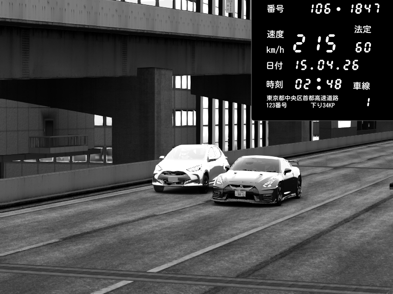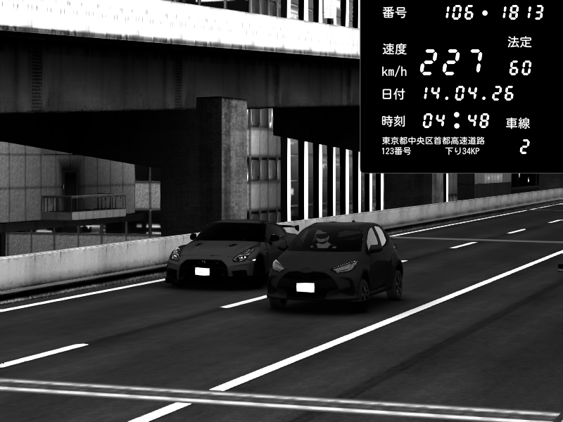 | 2026/04/14 04:45 | 9号下り 木場 | 162 / 60 km/h | biggy | Nissan GT-R NISMO 2017 | CAPTURE |