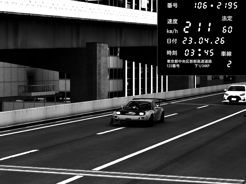 | 2026/04/23 03:45 | 9号下り 木場 | 211 / 60 km/h | AJDragon | Mazda RX-7 FD3S FEED Afflux GT3 | CAPTURE |