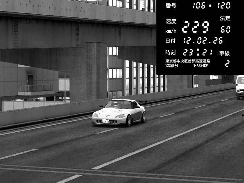 | 2026/02/12 23:21 | 9号下り 木場 | 229 / 60 km/h | kinta | Honda S2000 (AP2 - Legendary) | CAPTURE |