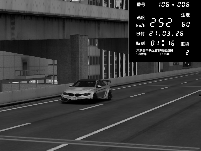 | 2026/03/21 01:16 | 9号下り 木場 | 252 / 60 km/h | Hennessy | BMW M4 crash.Sp Varis Widebody | CAPTURE |