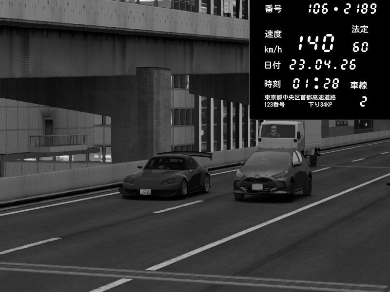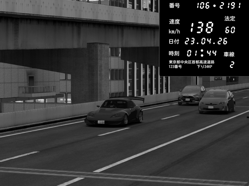 | 2026/04/23 01:34 | 9号下り 木場 | 165 / 60 km/h | AroxSter | Honda S2000 Turbo GT1 Amuse (AP1) | CAPTURE |