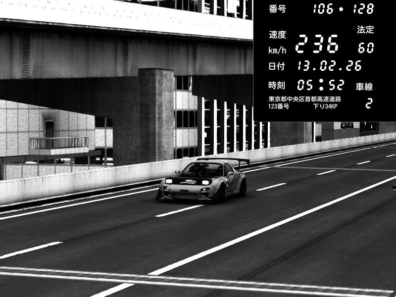 | 2026/02/12 01:47 | 9号下り 木場 | 216 / 60 km/h | Ant VR drifting | Mazda RX-7 FD3S FEED Afflux GT3 | CAPTURE |