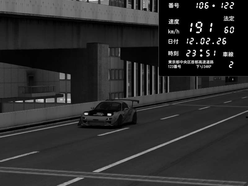 | 2026/02/11 22:49 | 9号下り 木場 | 137 / 60 km/h | CHURCH_YAHA | Mazda RX-7 FD3S RE Amemiya | CAPTURE |