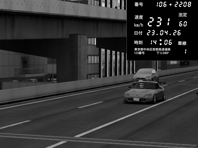 | 2026/04/23 14:06 | 9号下り 木場 | 231 / 60 km/h | パイナップルYY | Honda S2000 (AP2 - Legendary) | CAPTURE |