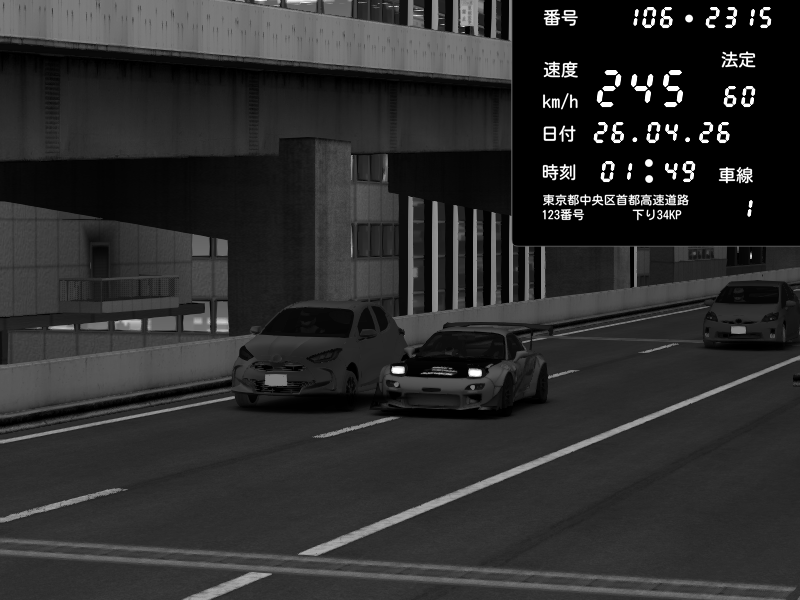 | 2026/04/23 19:22 | 9号下り 木場 | 185 / 60 km/h | MITSUKIMAN | Pit Road M - Mitsubishi GTO Twin Turbo | CAPTURE |