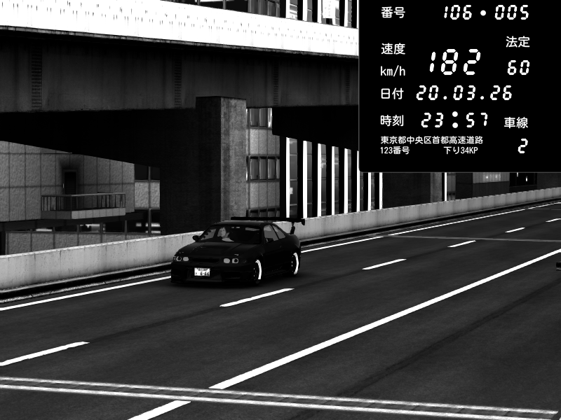 | 2026/03/20 23:57 | 9号下り 木場 | 182 / 60 km/h | _real_one | Nissan Skyline GTR R33 (S3 - Wangan) | CAPTURE |