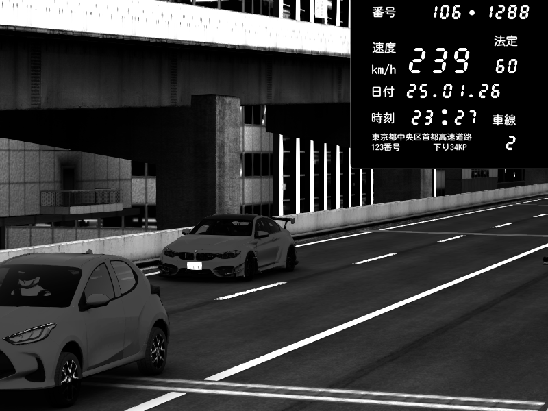 | 2026/01/25 16:49 | 9号下り 木場 | 263 / 60 km/h | LDHyeon | BMW M4 crash.Sp Varis Widebody | CAPTURE |