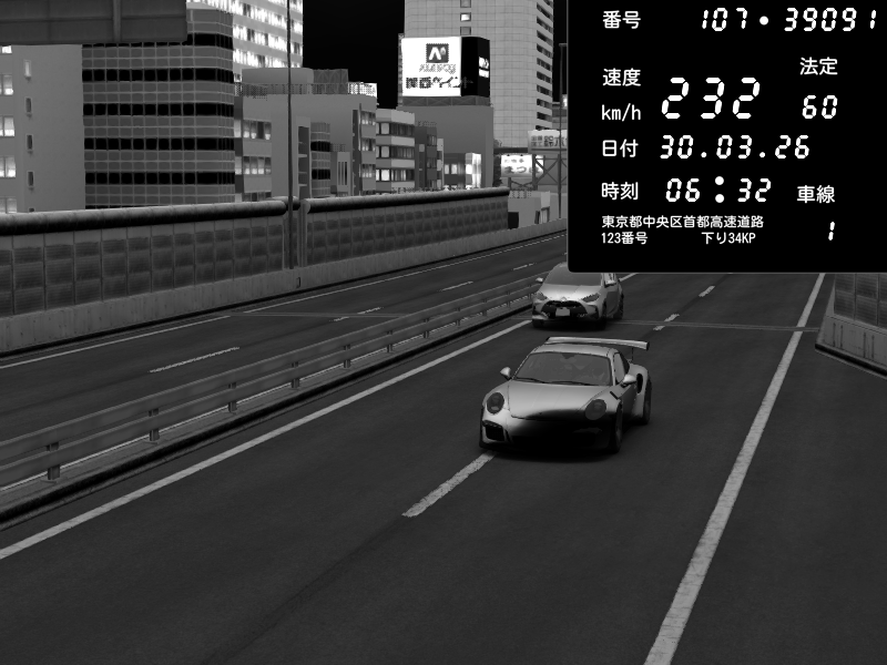 | 2026/03/31 02:33 | C1外回り 芝公園 | 220 / 60 km/h | Nook | Porsche 911 GT3 RS | CAPTURE |