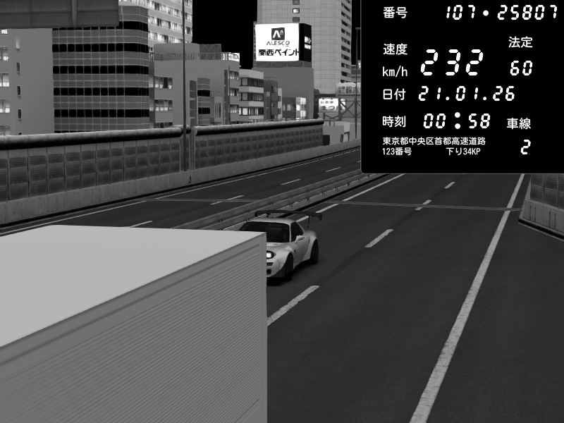 | 2026/01/22 01:53 | C1外回り 芝公園 | 219 / 60 km/h | Player | Mazda RX-7 FD3S FEED Afflux GT3 | CAPTURE |