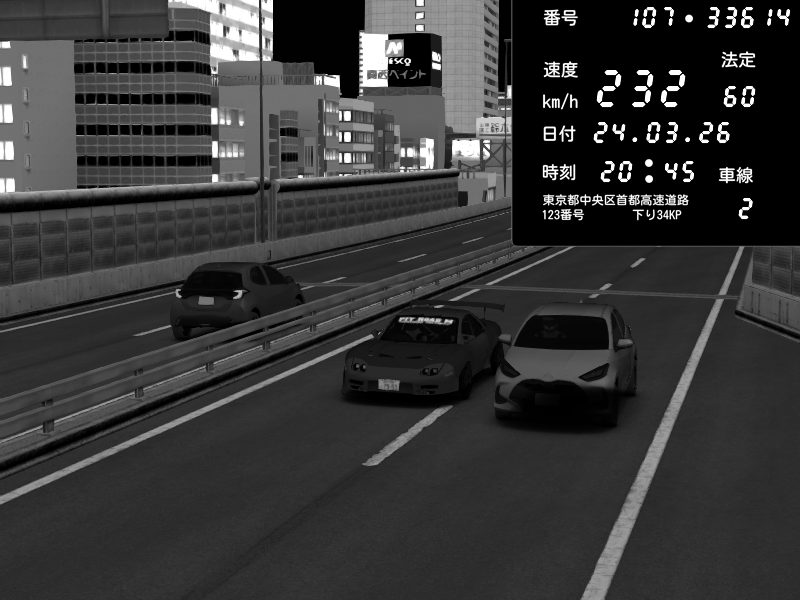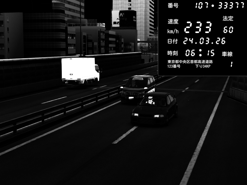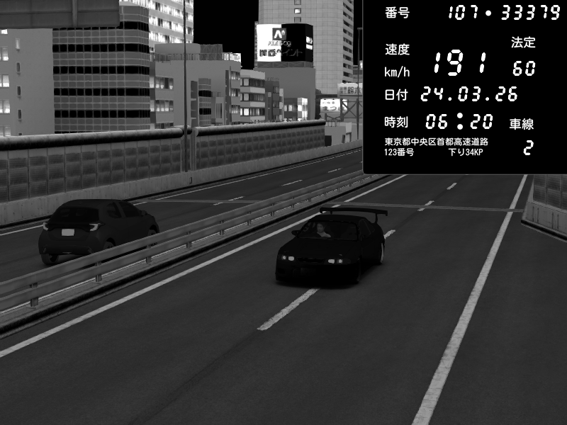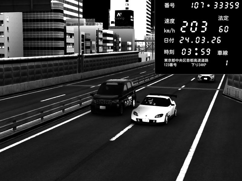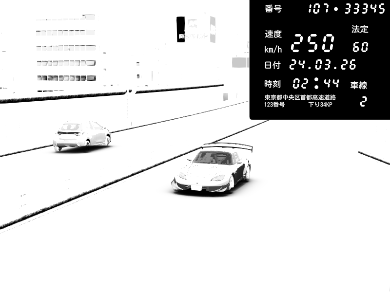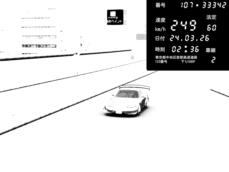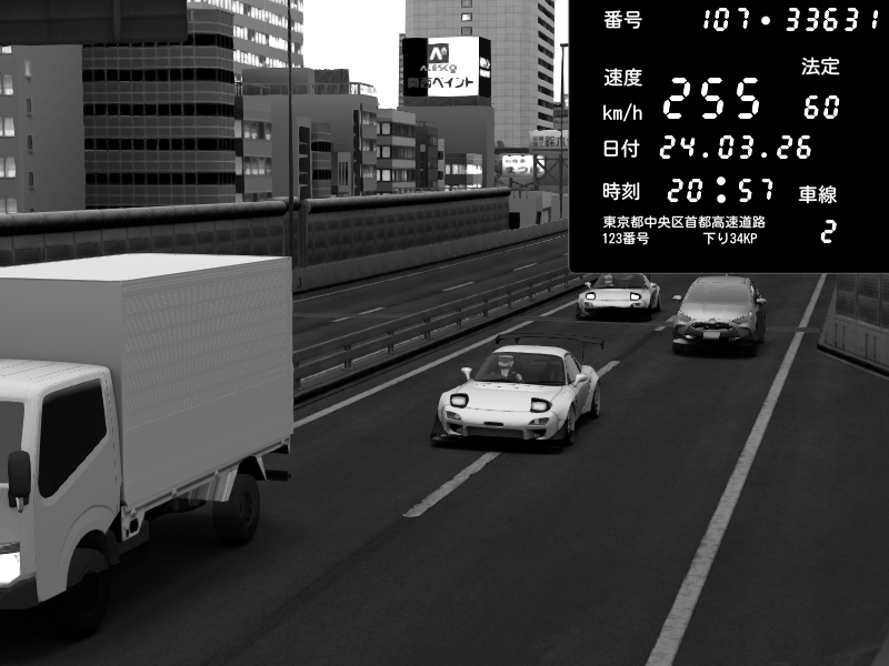 | 2026/03/24 20:39 | C1外回り 芝公園 | 223 / 60 km/h | D-Ordoft | Pit Road M - Mitsubishi GTO Twin Turbo | CAPTURE |