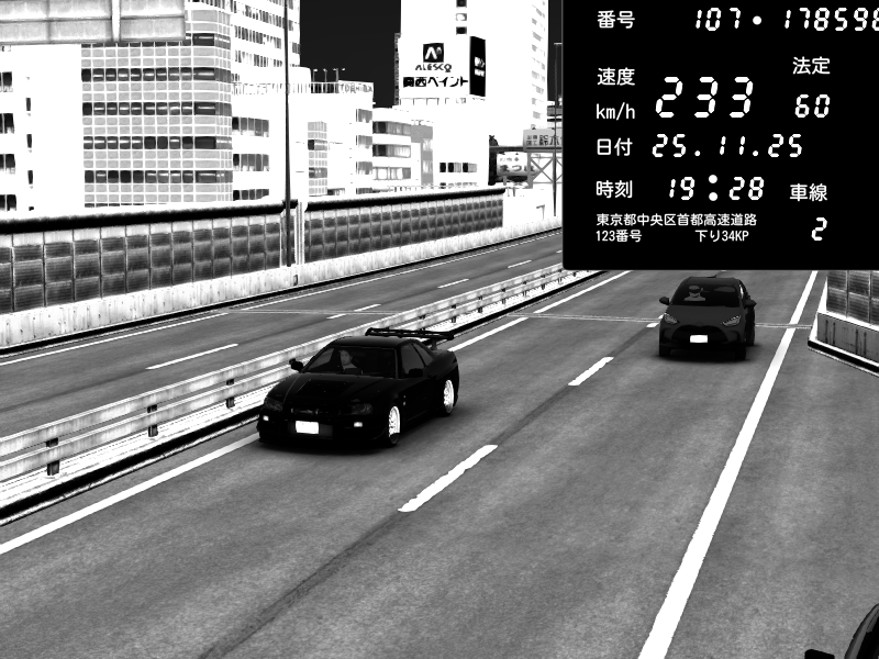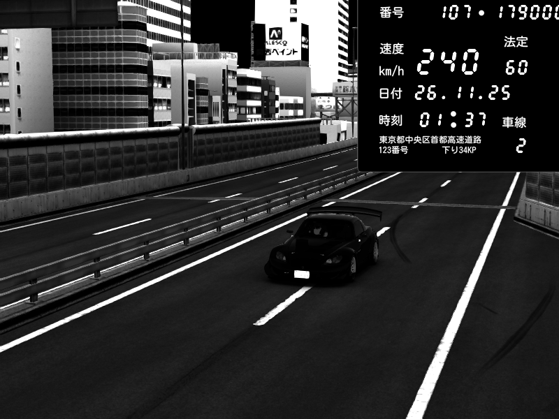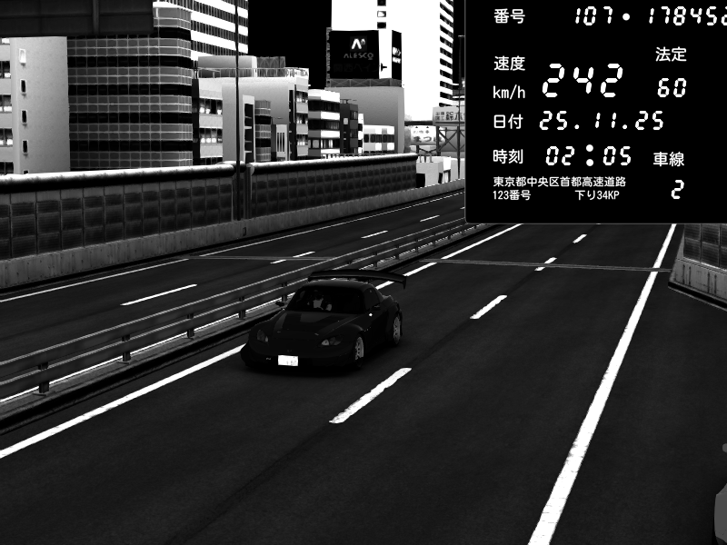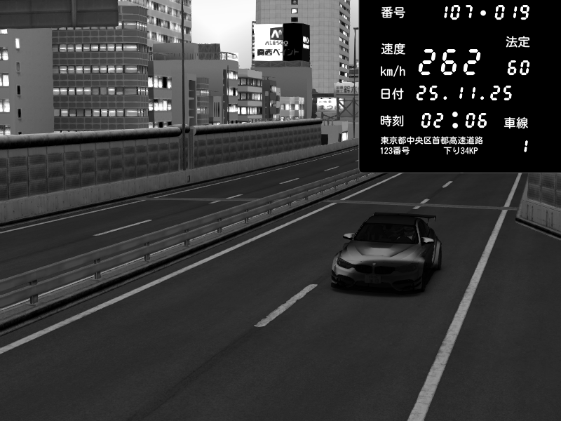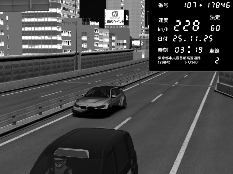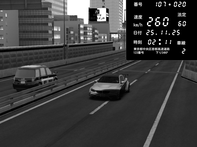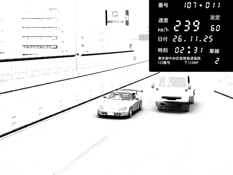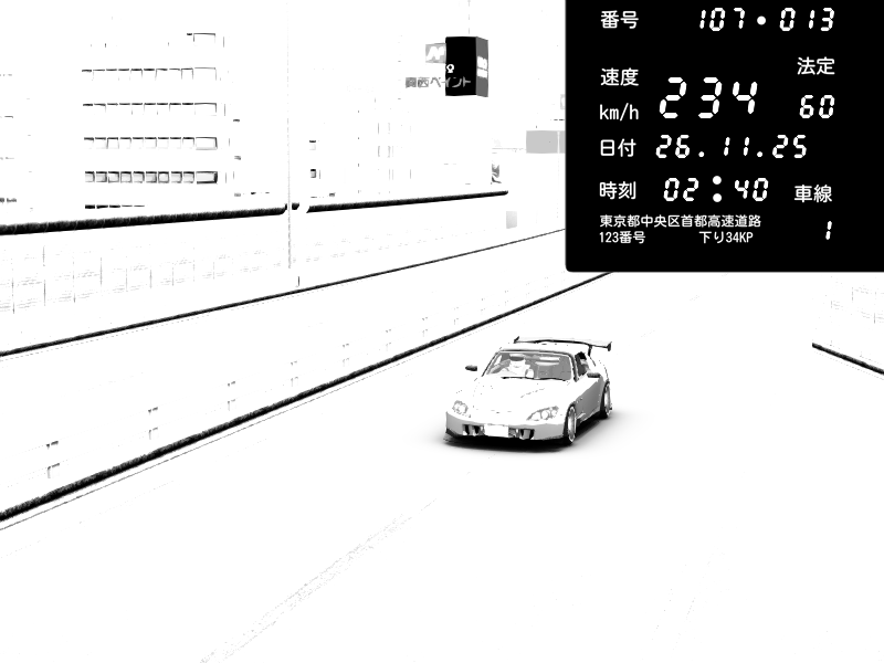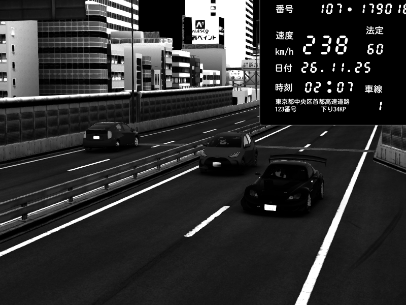| 2025/11/26 01:37 | C1外回り 芝公園 | 240 / 60 km/h | Player | Honda S2000 Turbo GT1 Amuse (AP1) | CAPTURE |
