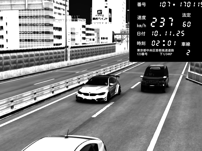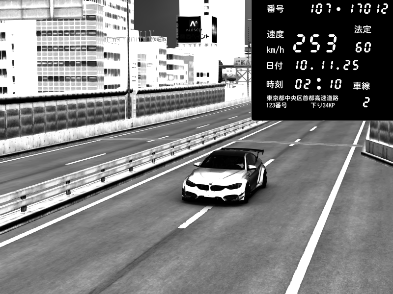 | 2025/11/10 01:21 | C1外回り 芝公園 | 253 / 60 km/h | monmon815 | BMW M4 crash.Sp Varis Widebody | CAPTURE |