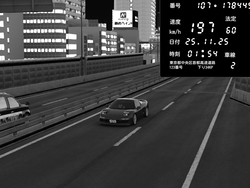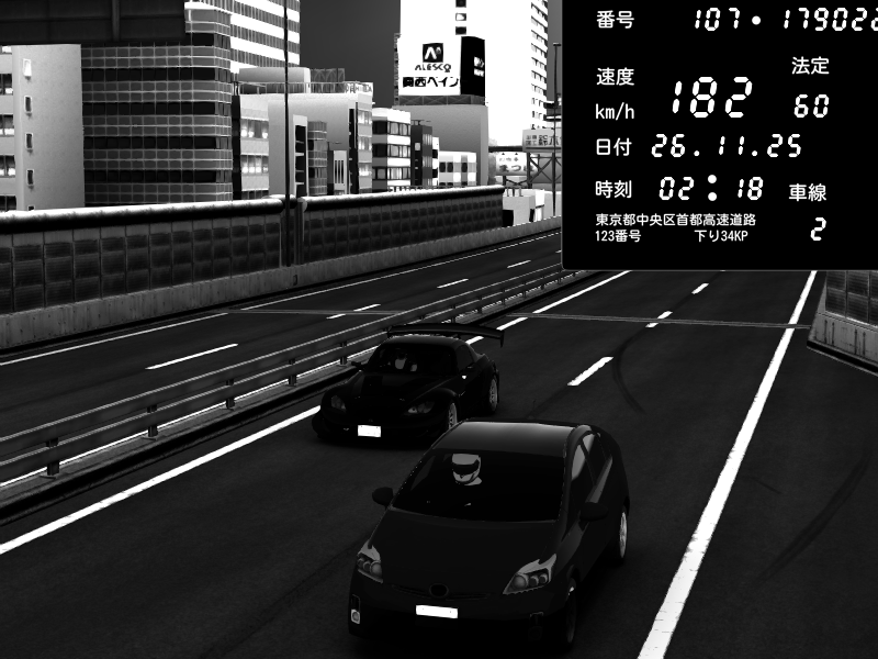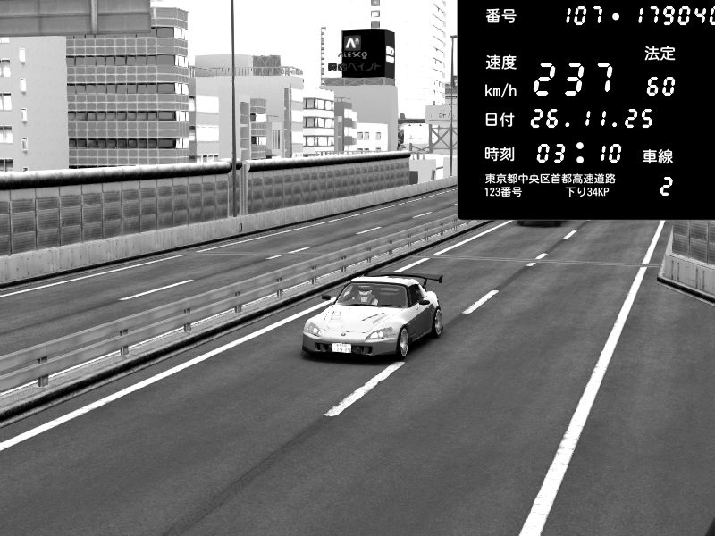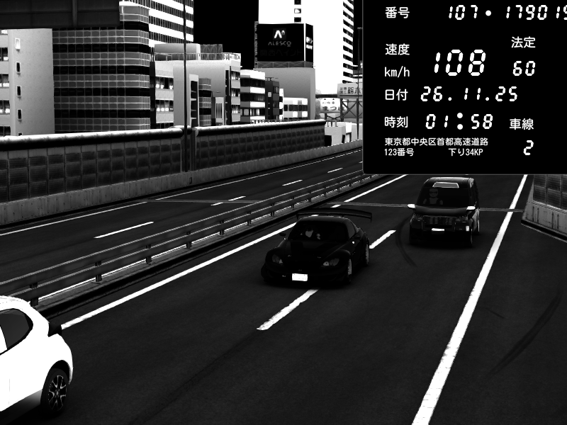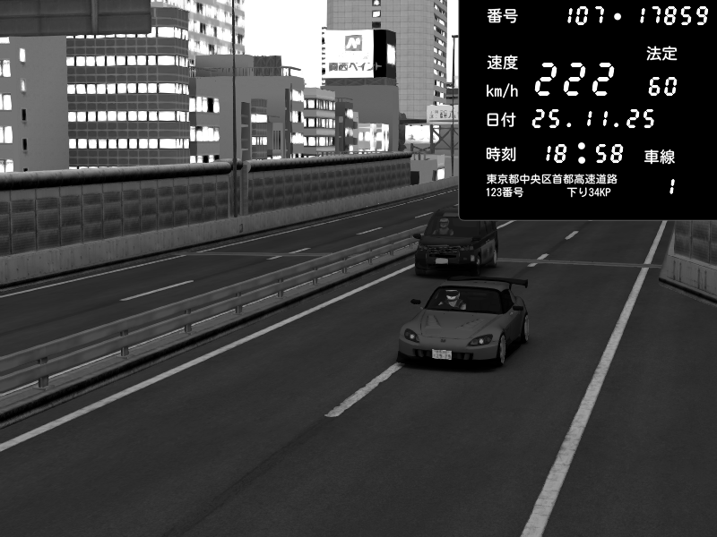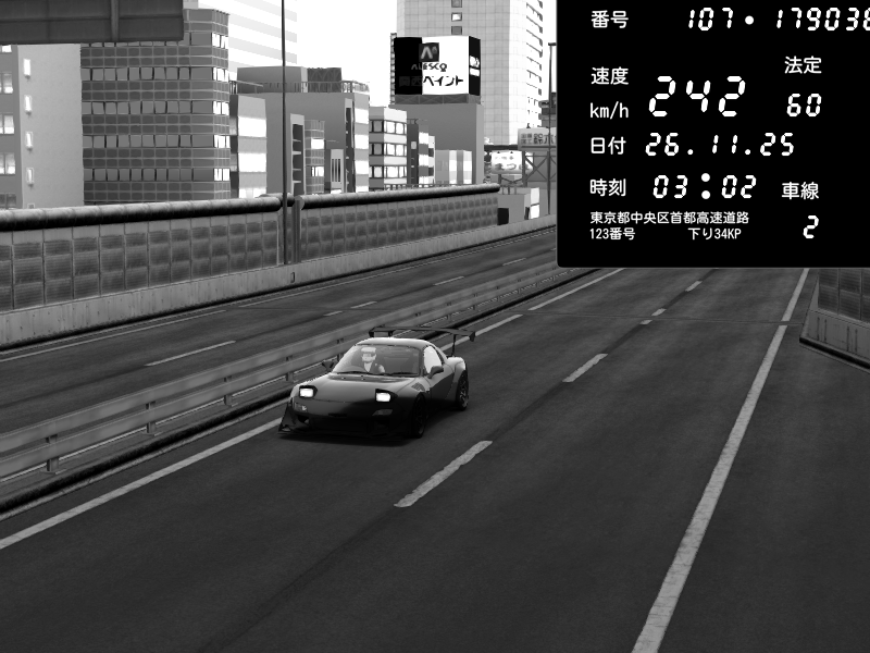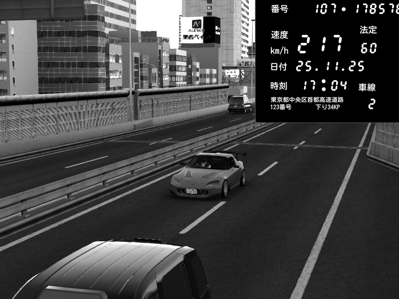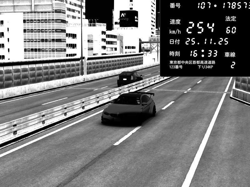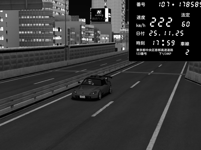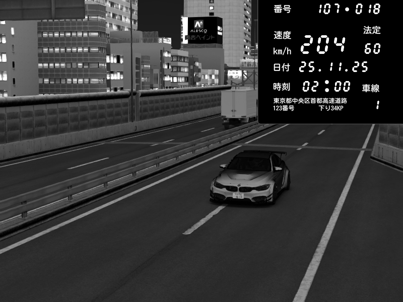 | 2025/11/26 02:18 | C1外回り 芝公園 | 182 / 60 km/h | Player | Honda S2000 Turbo GT1 Amuse (AP1) | CAPTURE |