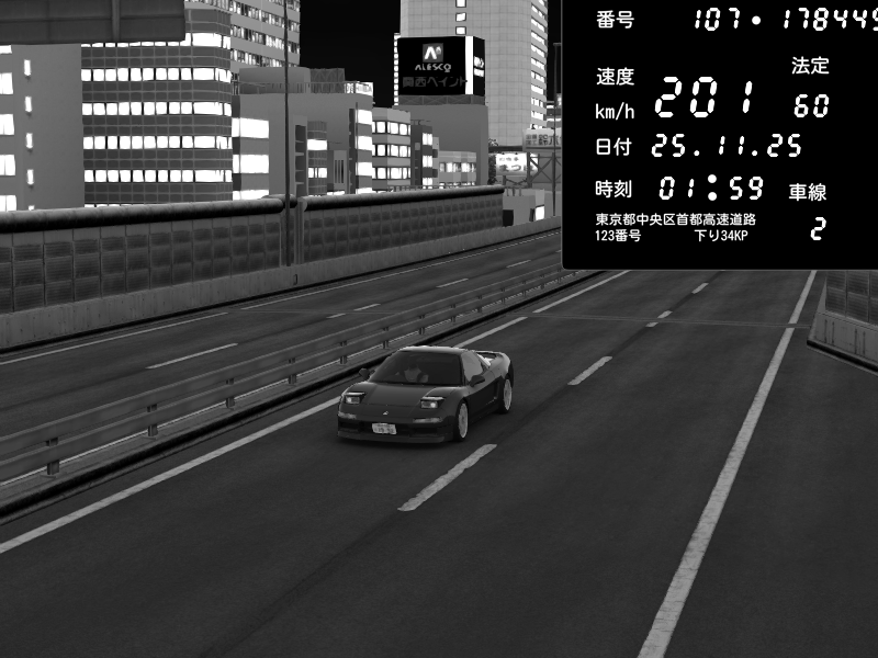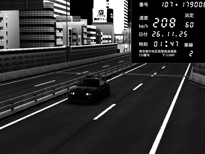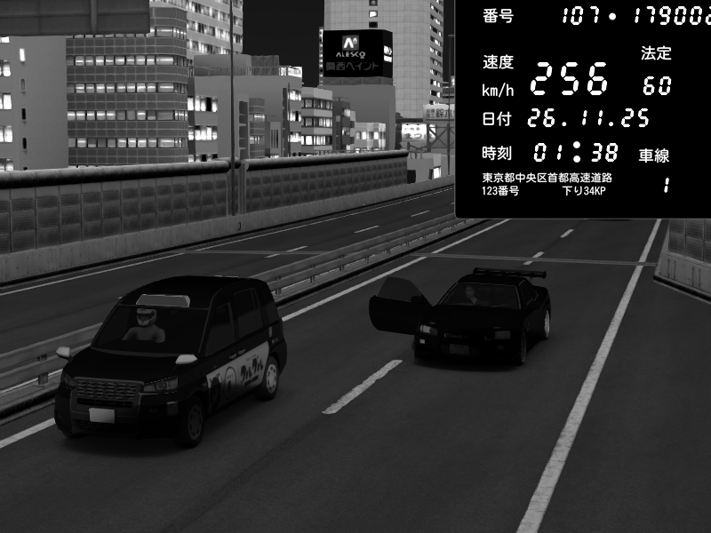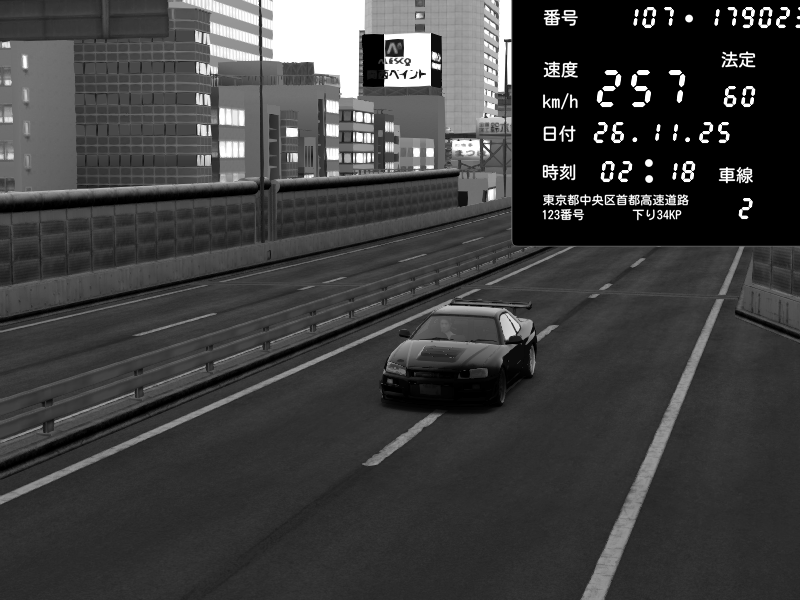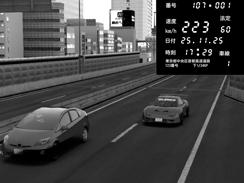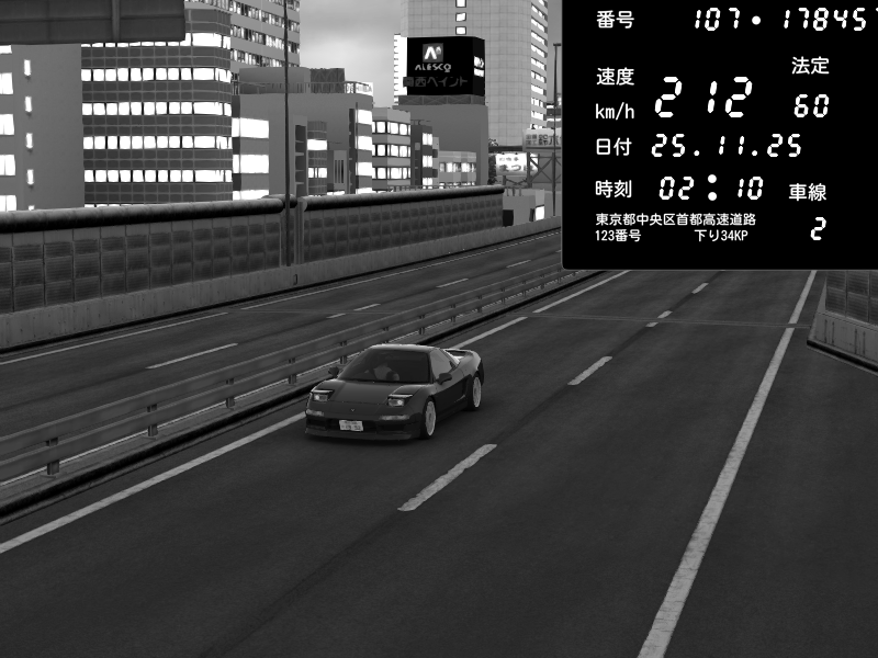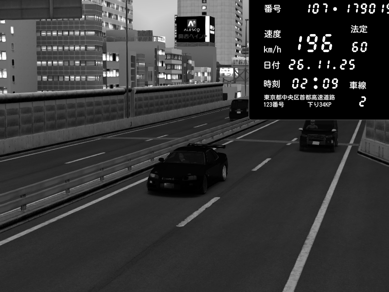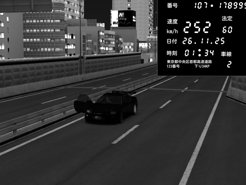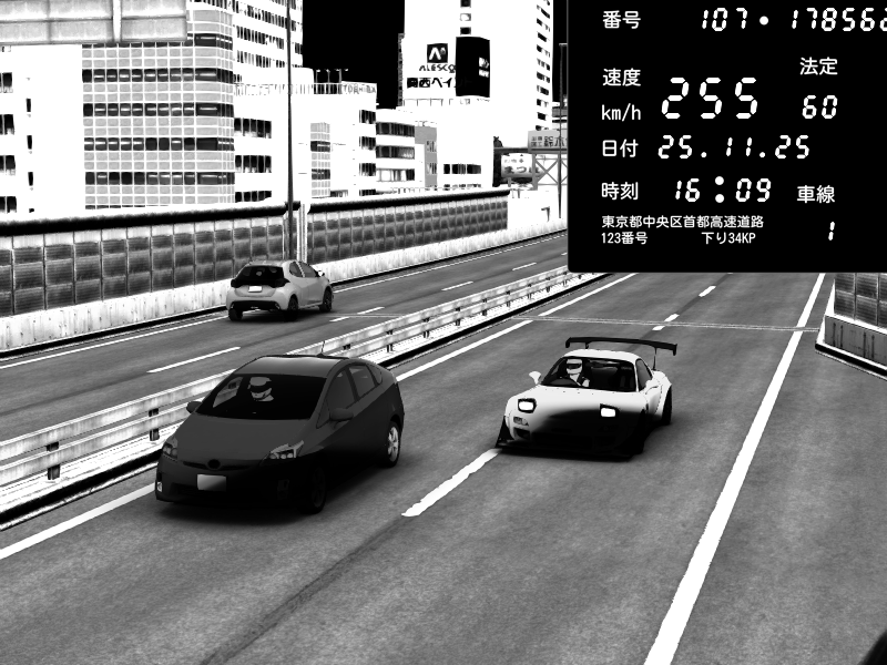 | 2025/11/26 02:18 | C1外回り 芝公園 | 182 / 60 km/h | Player | Honda S2000 Turbo GT1 Amuse (AP1) | CAPTURE |