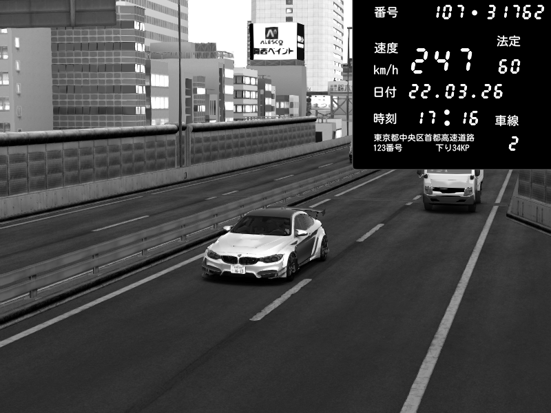 | 2026/03/22 18:21 | C1外回り 芝公園 | 235 / 60 km/h | fuga | BMW M4 crash.Sp Varis Widebody | CAPTURE |