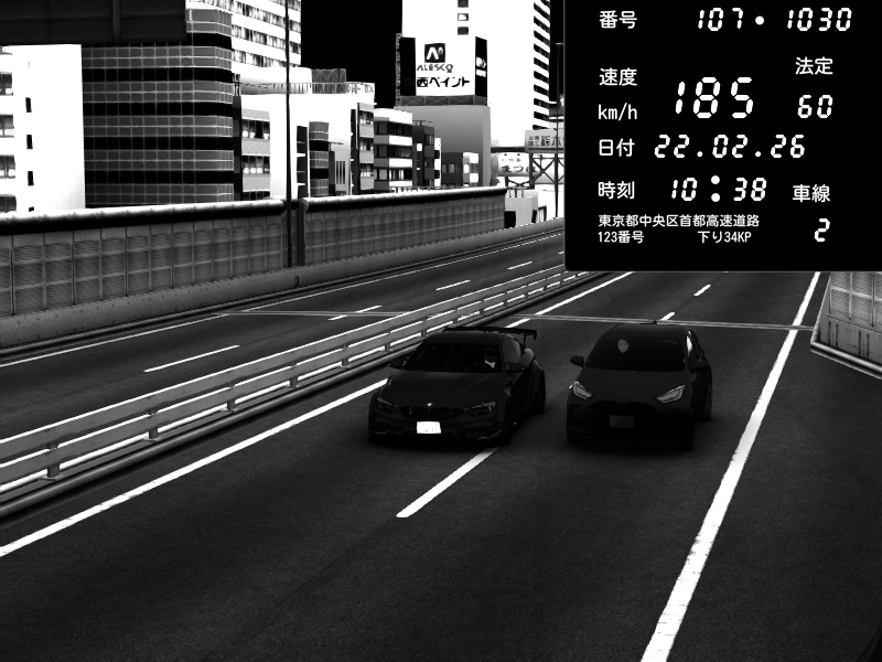 | 2026/02/22 10:38 | C1外回り 芝公園 | 185 / 60 km/h | HellAkey | BMW M4 crash.Sp Varis Widebody | CAPTURE |