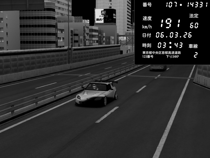 | 2026/03/06 03:43 | C1外回り 芝公園 | 191 / 60 km/h | fuga | Honda S2000 (AP2 - Legendary) | CAPTURE |