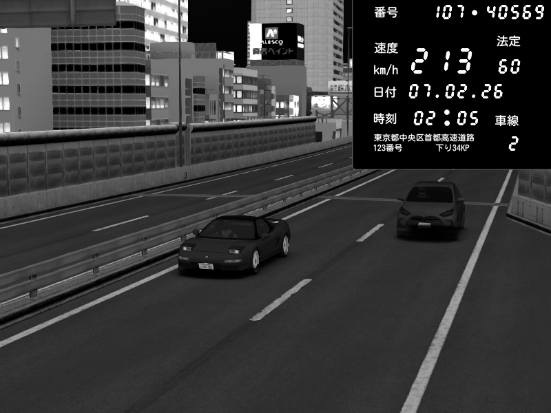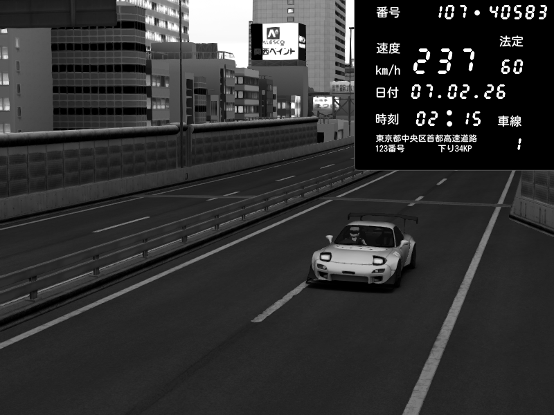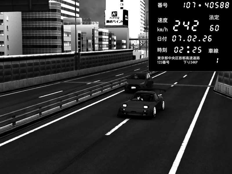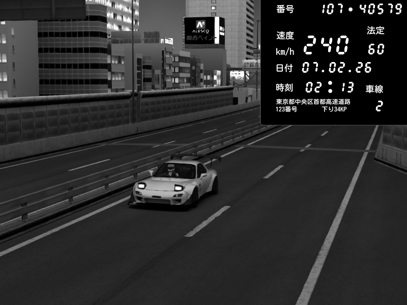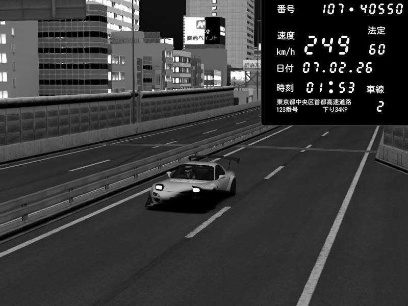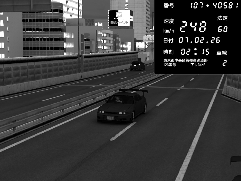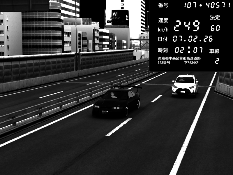 | 2026/02/07 01:59 | C1外回り 芝公園 | 250 / 60 km/h | SHOW5 | Nissan Skyline GTR R33 (S3 - Wangan) | CAPTURE |