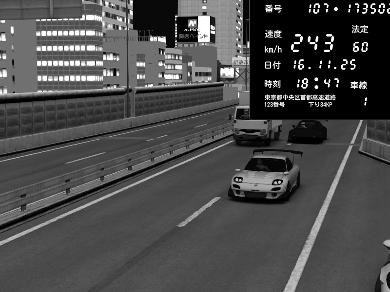 | 2025/11/16 19:53 | C1外回り 芝公園 | 235 / 60 km/h | Player | Mazda RX-7 FD3S FEED Afflux GT3 | CAPTURE |