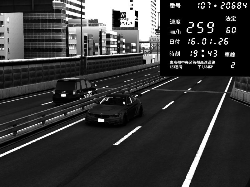 | 2026/01/16 15:53 | C1外回り 芝公園 | 259 / 60 km/h | みにぼーい | BMW M4 crash.Sp Varis Widebody | CAPTURE |