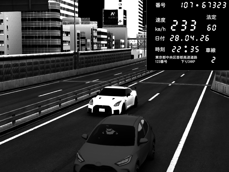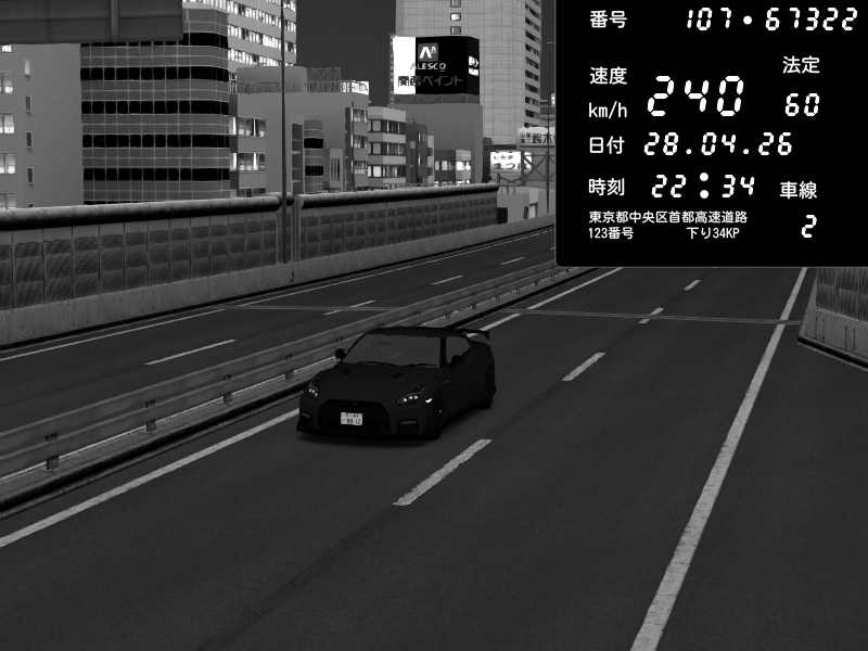 | 2026/04/28 01:54 | C1外回り 芝公園 | 242 / 60 km/h | PIE | Nissan GT-R NISMO 2017 | CAPTURE |