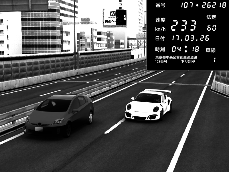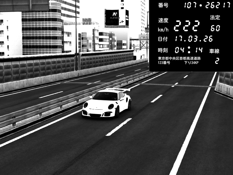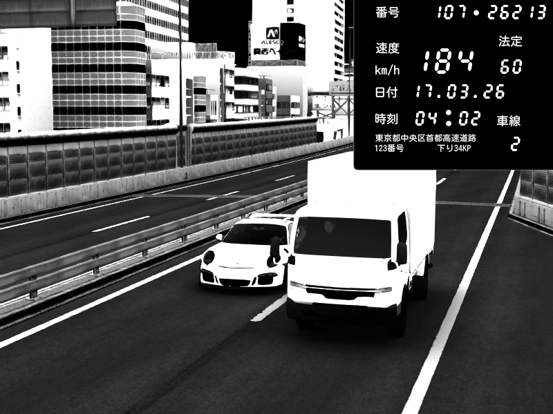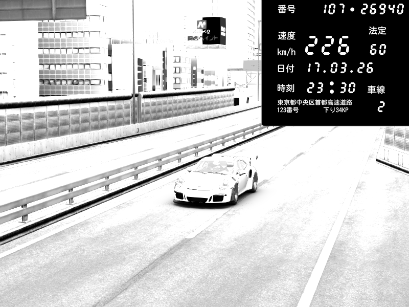 | 2026/03/17 23:31 | C1外回り 芝公園 | 226 / 60 km/h | クロちゃん | Porsche 911 GT3 RS | CAPTURE |