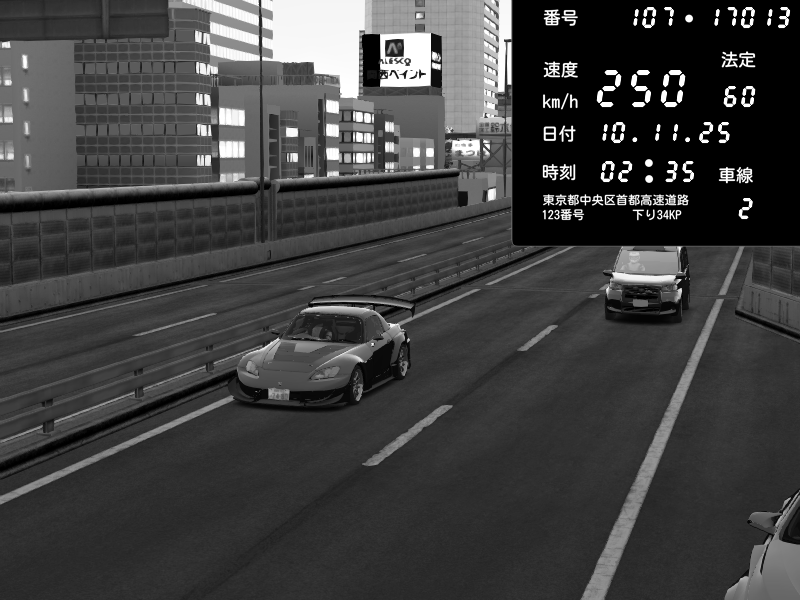 | 2025/11/10 02:35 | C1外回り 芝公園 | 250 / 60 km/h | Kyo | Honda S2000 Turbo GT1 Amuse (AP1) | CAPTURE |