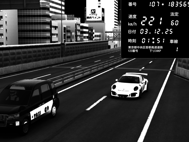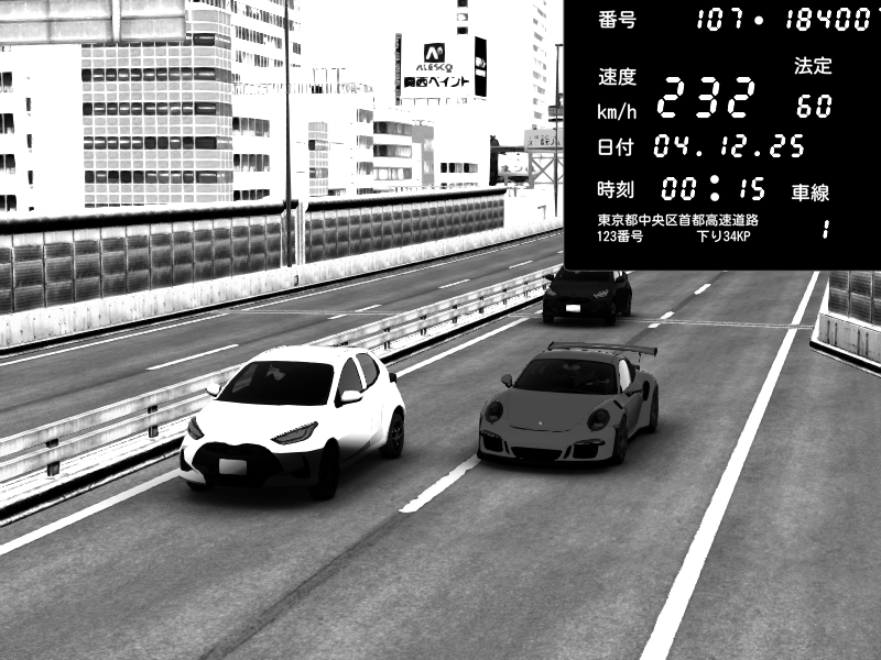 | 2025/12/04 03:11 | C1外回り 芝公園 | 230 / 60 km/h | o2javeL | Porsche 911 GT3 RS | CAPTURE |