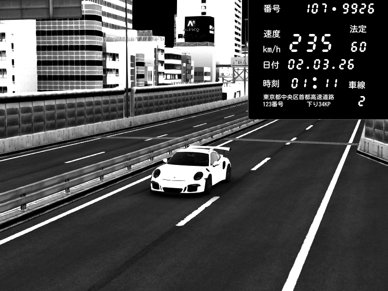 | 2026/03/02 01:06 | C1外回り 芝公園 | 226 / 60 km/h | Masakichi | Porsche 911 GT3 RS | CAPTURE |