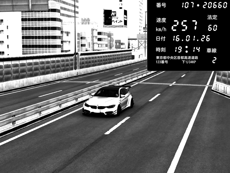 | 2026/01/16 15:49 | C1外回り 芝公園 | 257 / 60 km/h | みにぼーい | BMW M4 crash.Sp Varis Widebody | CAPTURE |