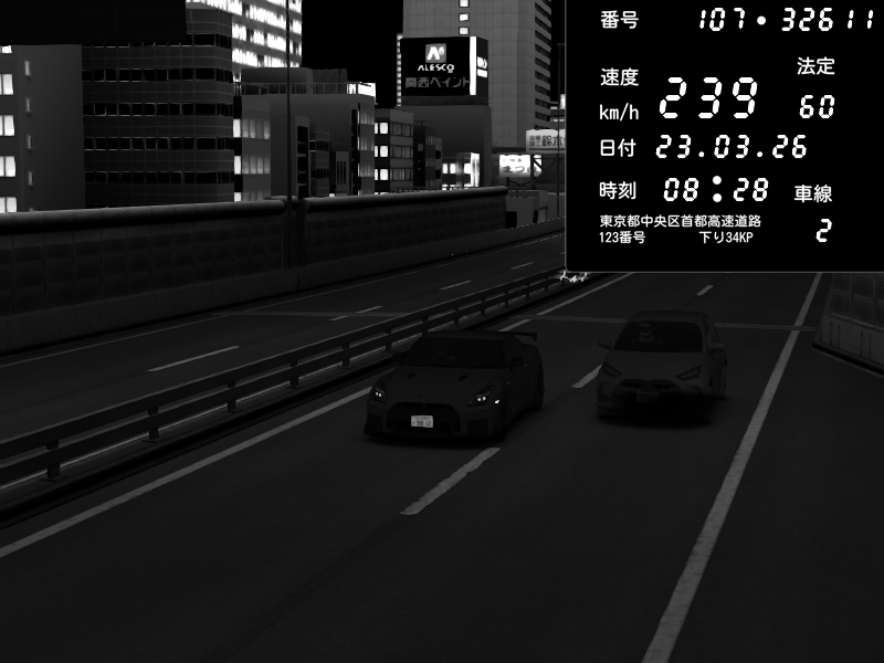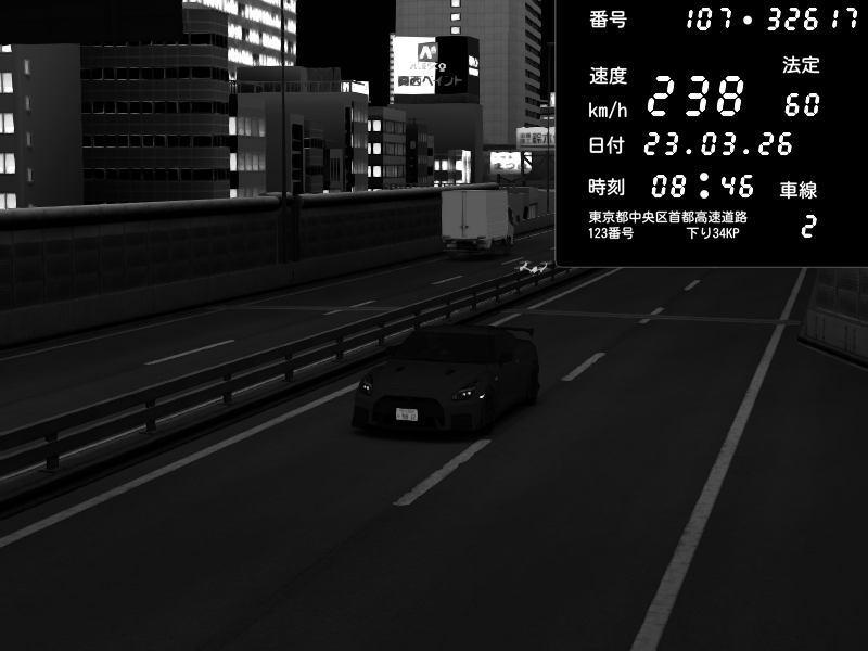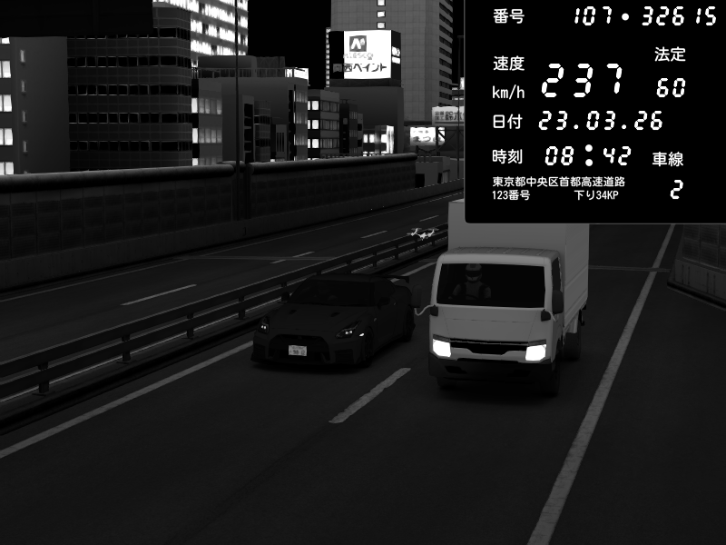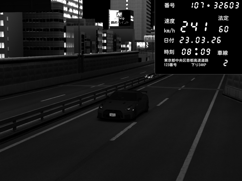 | 2026/03/24 03:23 | C1外回り 芝公園 | 241 / 60 km/h | RiTZ | Nissan GT-R NISMO 2017 | CAPTURE |