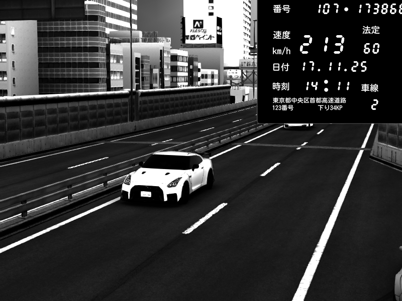 | 2025/11/17 14:11 | C1外回り 芝公園 | 213 / 60 km/h | えるなぶ | Nissan GT-R NISMO 2017 | CAPTURE |