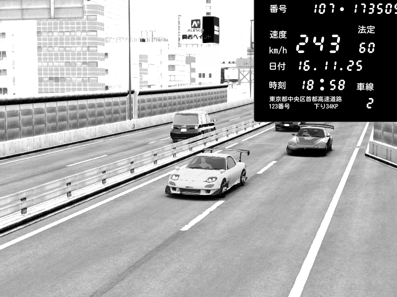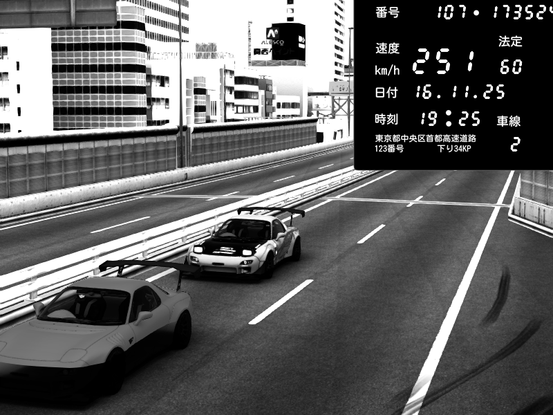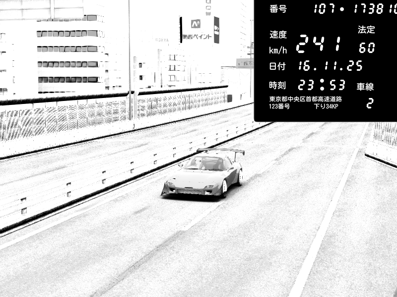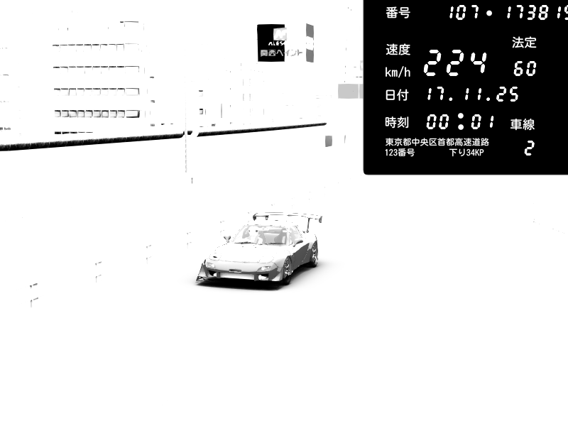 | 2025/11/16 19:59 | C1外回り 芝公園 | 228 / 60 km/h | Player | Mazda RX-7 FD3S FEED Afflux GT3 | CAPTURE |