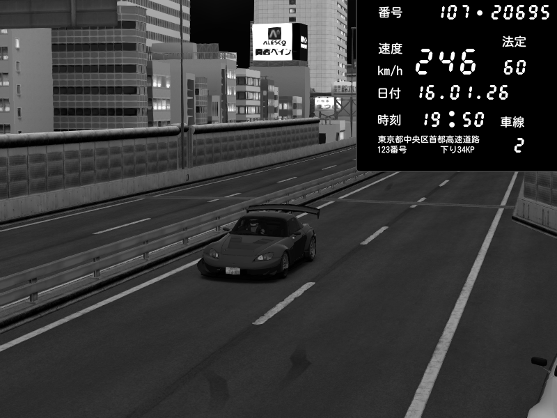 | 2026/01/16 16:53 | C1外回り 芝公園 | 235 / 60 km/h | ナイトシフト | Honda S2000 (AP2 - Legendary) | CAPTURE |