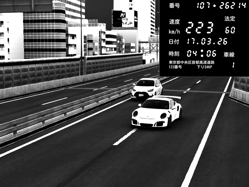 | 2026/03/17 23:40 | C1外回り 芝公園 | 228 / 60 km/h | クロちゃん | Porsche 911 GT3 RS | CAPTURE |