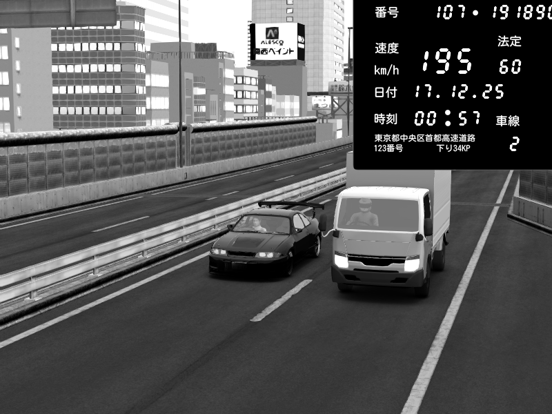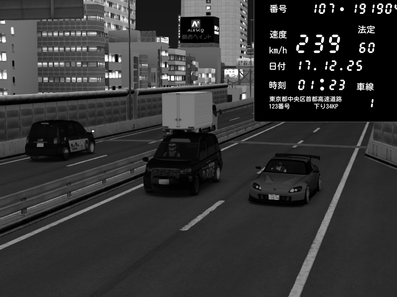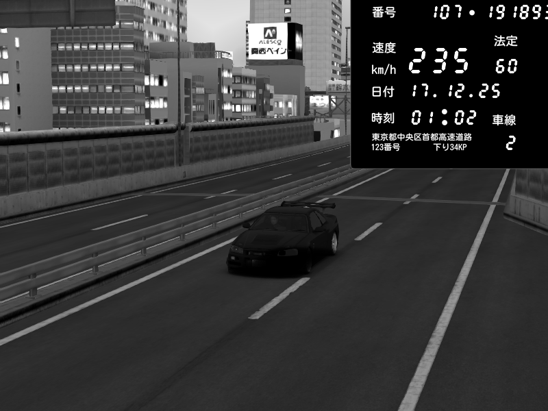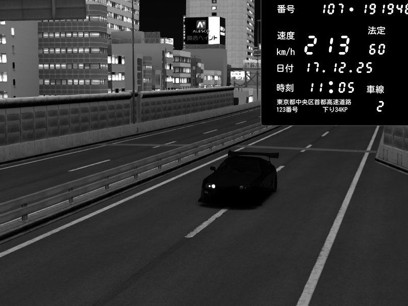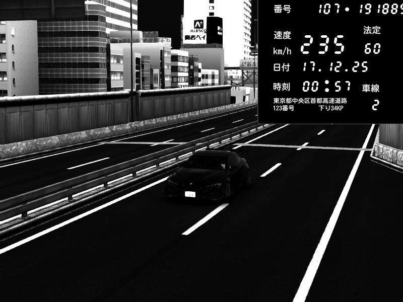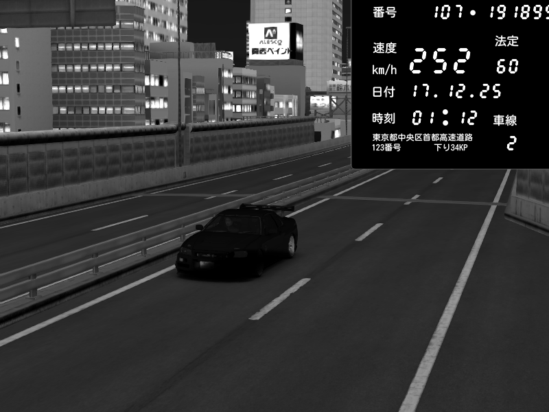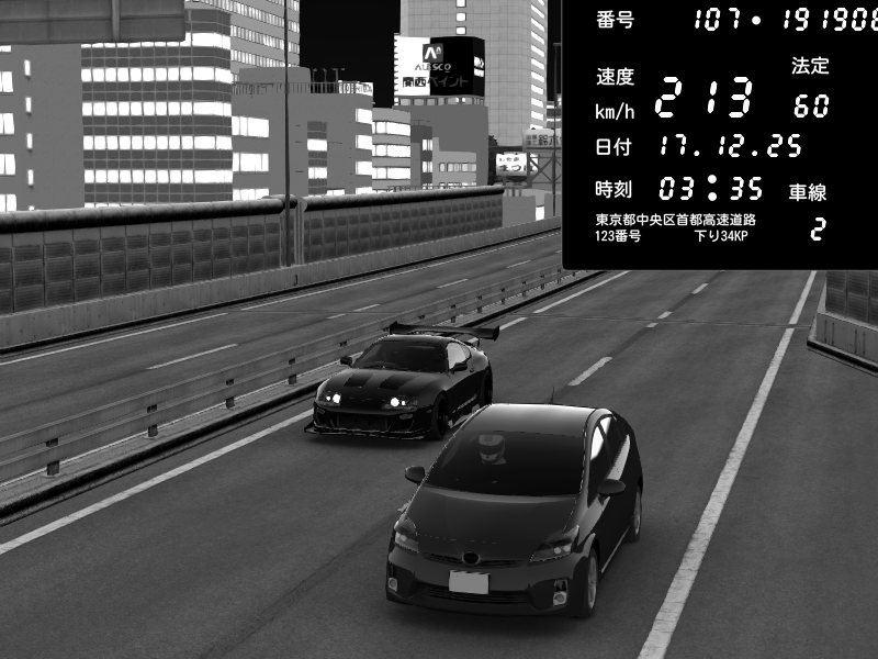 | 2025/12/17 09:46 | C1外回り 芝公園 | 224 / 60 km/h | ホーネット | Nissan Skyline GTR R33 (S3 - Wangan) | CAPTURE |