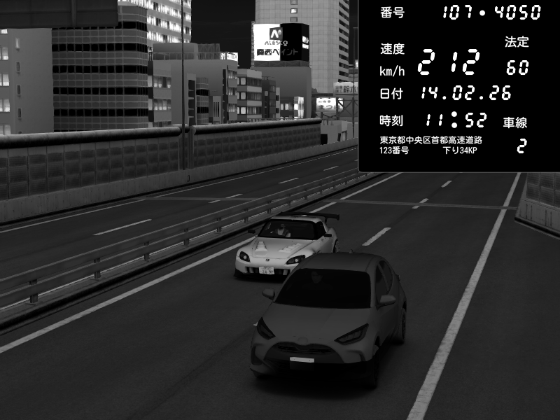 | 2026/02/14 11:52 | C1外回り 芝公園 | 212 / 60 km/h | Nobe | Honda S2000 (AP2 - Legendary) | CAPTURE |