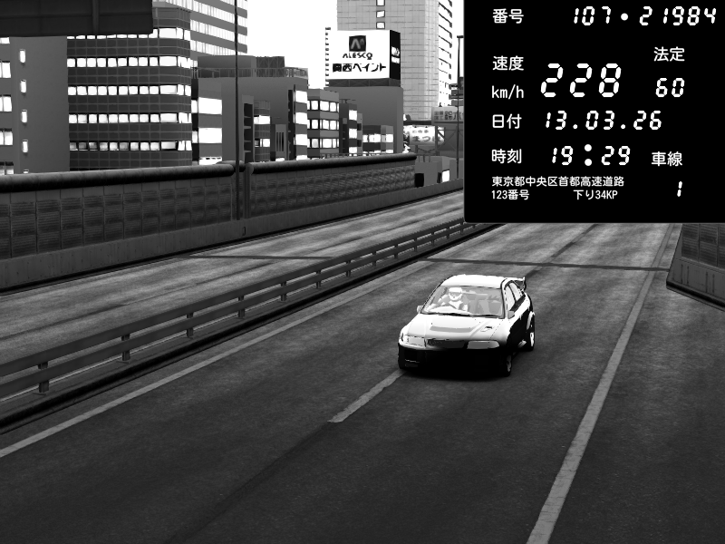 | 2026/03/13 19:29 | C1外回り 芝公園 | 228 / 60 km/h | yukkuri marisa | Mitsubishi Lancer Evolution V Wangan Spec | CAPTURE |