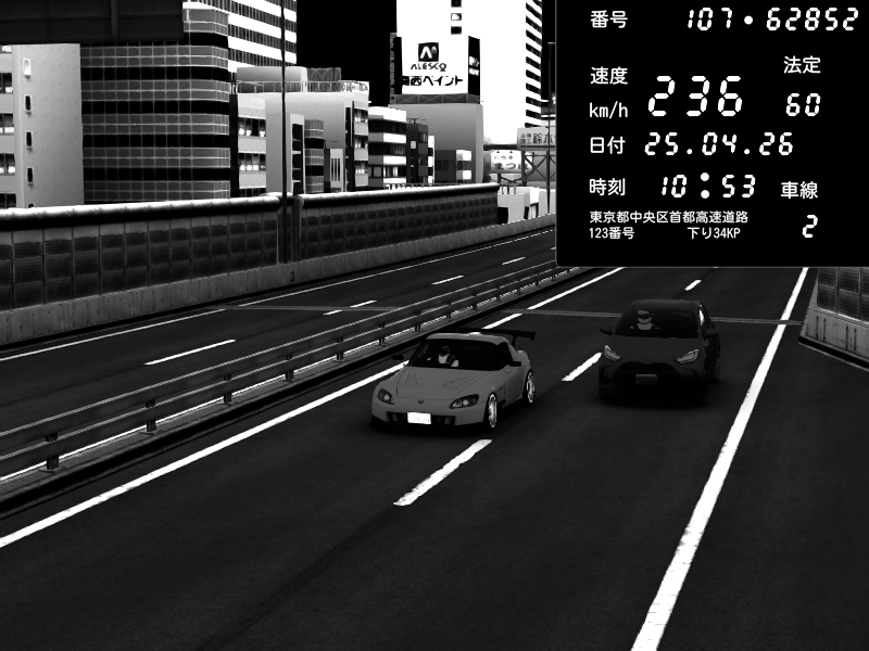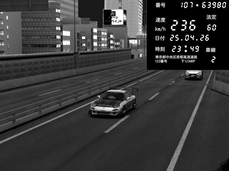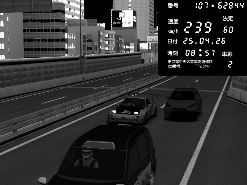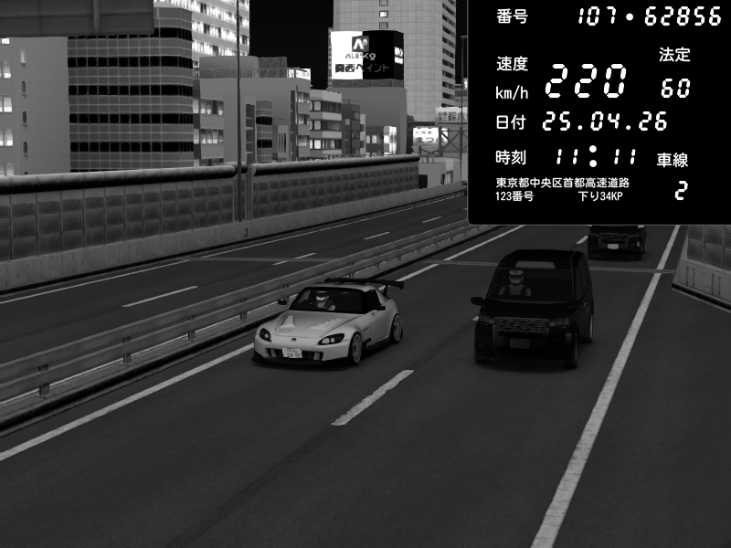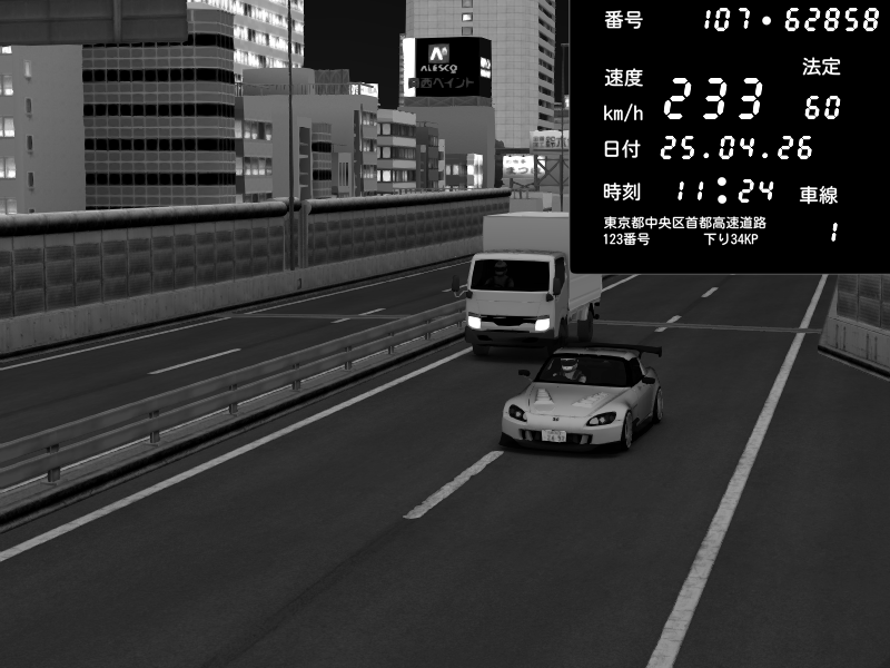 | 2026/04/24 20:42 | C1ๅคๅใ ่ๅ ฌๅ | 226 / 60 km/h | HIGHEST | Nissan Skyline GTR R33 (S3 - Wangan) | CAPTURE |
