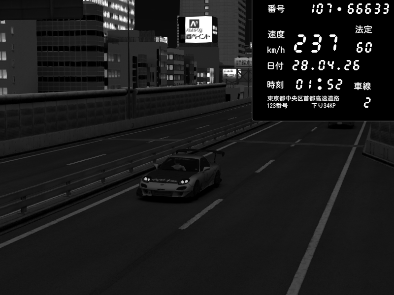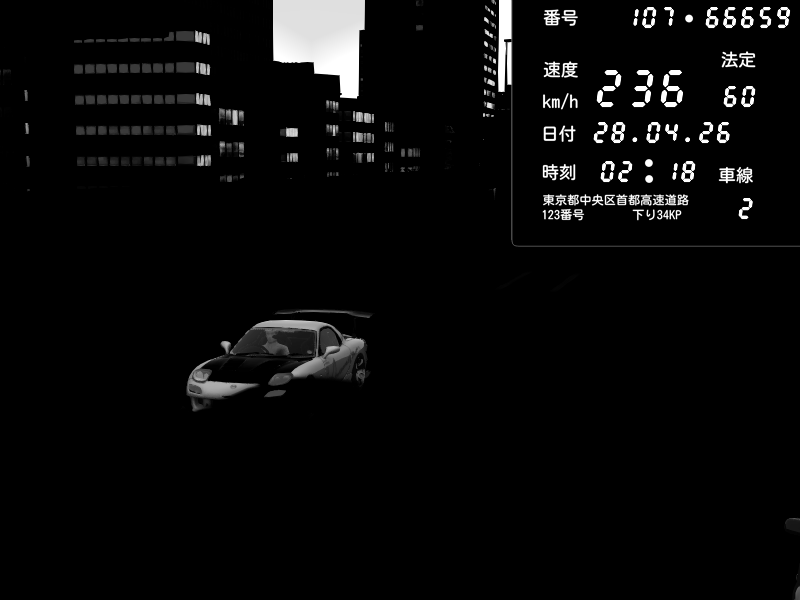 | 2026/04/27 01:46 | C1外回り 芝公園 | 234 / 60 km/h | SarkoNAJA | Mazda RX-7 FD3S RE Amemiya | CAPTURE |