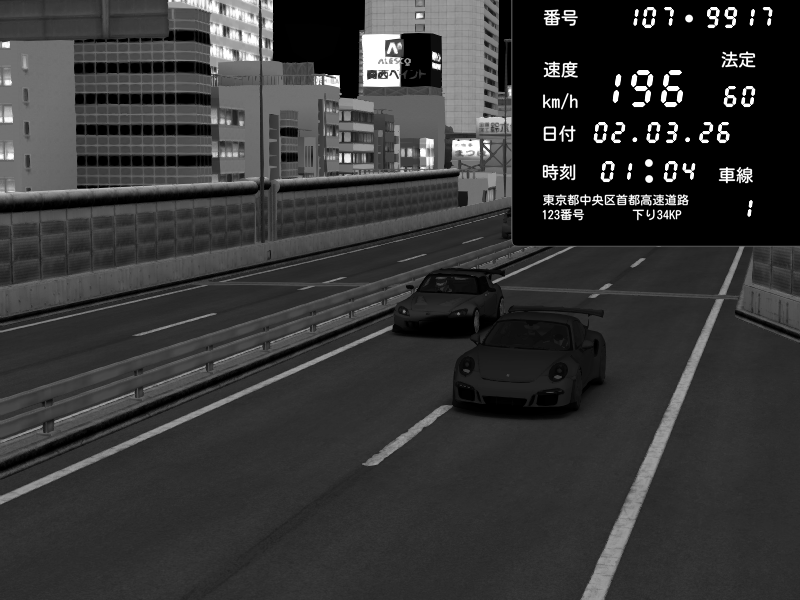 | 2026/03/02 01:04 | C1外回り 芝公園 | 196 / 60 km/h | T.DarkSideEyes | Honda S2000 (AP2 - Legendary) | CAPTURE |