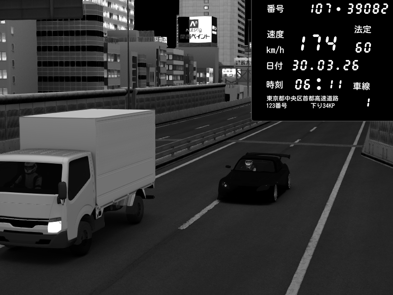| 2026/03/31 01:00 | C1外回り 芝公園 | 164 / 60 km/h | Player | Mazda RX-7 FD3S RE Amemiya | CAPTURE |