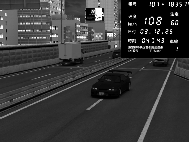 | 2025/12/04 04:21 | C1外回り 芝公園 | 228 / 60 km/h | Player | Nissan Skyline GT-R R34 Nismo Omori Factory S1 | CAPTURE |
