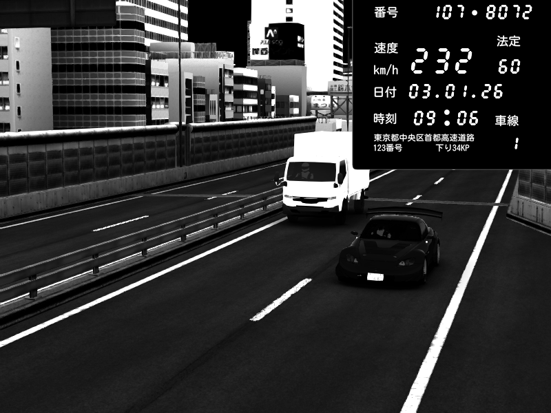 | 2026/01/03 09:06 | C1外回り 芝公園 | 232 / 60 km/h | Player | Honda S2000 Turbo GT1 Amuse (AP1) | CAPTURE |