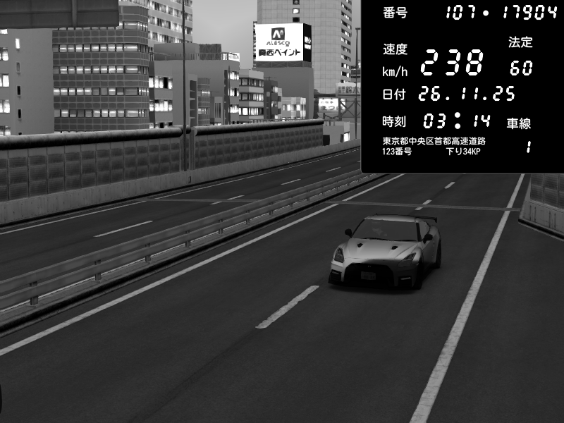 | 2025/11/26 03:14 | C1外回り 芝公園 | 238 / 60 km/h | sinon | Nissan GT-R NISMO 2017 | CAPTURE |