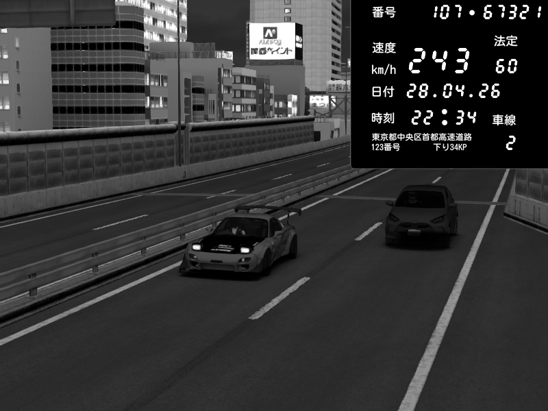 | 2026/04/28 02:05 | C1外回り 芝公園 | 240 / 60 km/h | ALICIA | Mazda RX-7 FD3S RE Amemiya | CAPTURE |